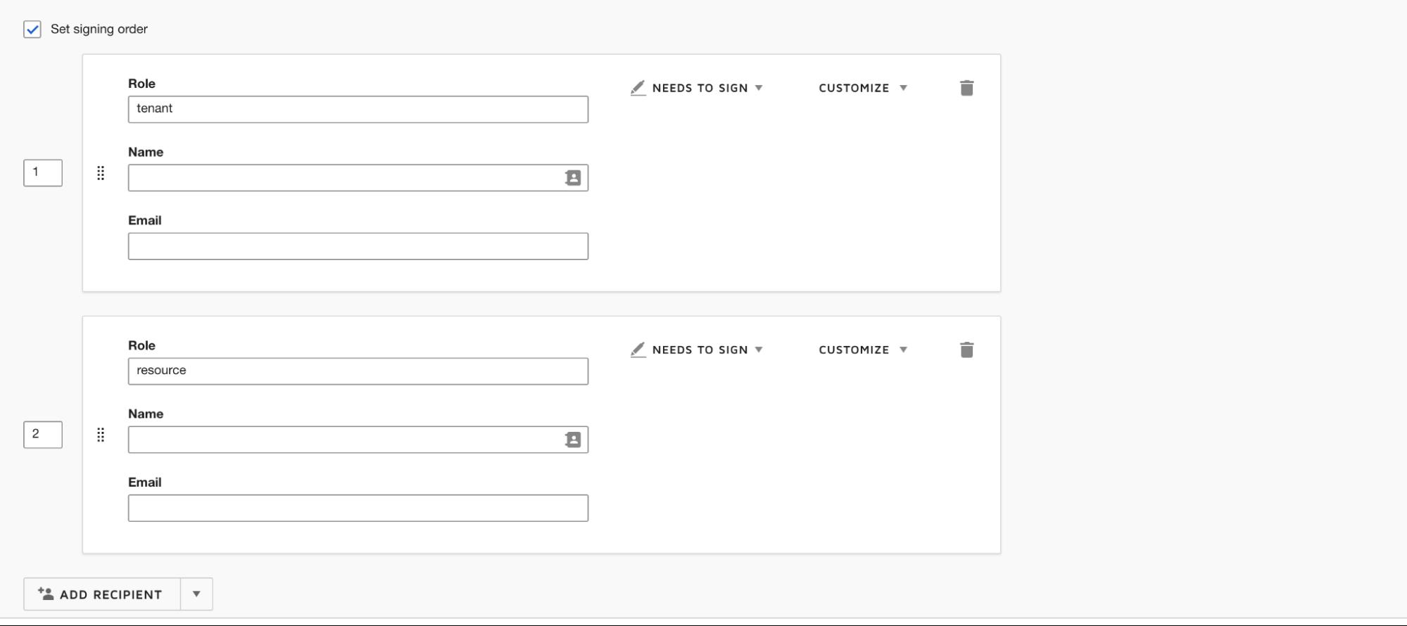 Our client required specific signing orders to complete the signing of templated forms.